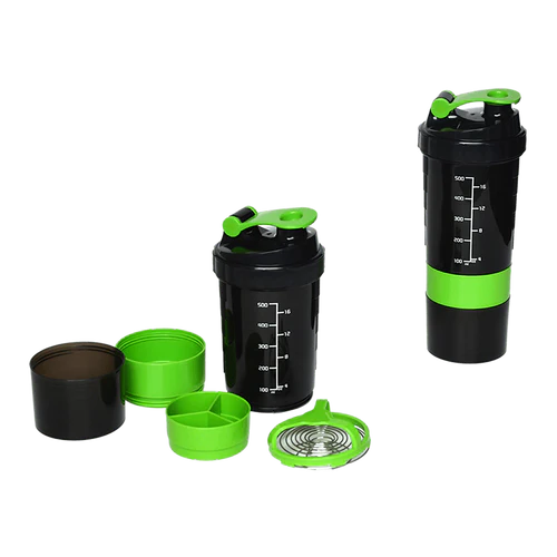 - 3-in-1 smart shaker design – Separate compartments for pills, dry supplements & liquid