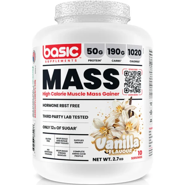 Basic Supplements Mass Gainer is a high-calorie, nutrient-dense formula built to help you gain quality size, strength, and muscle mass the right way. Featuring a precise blend of premium protein, complex carbohydrates, and healthy fats, this formula delivers the calories your body needs to grow — without the excess sugar or fillers found in typical gainers. Perfect for hard gainers, athletes, or anyone looking to increase their daily calorie intake and build lean mass.